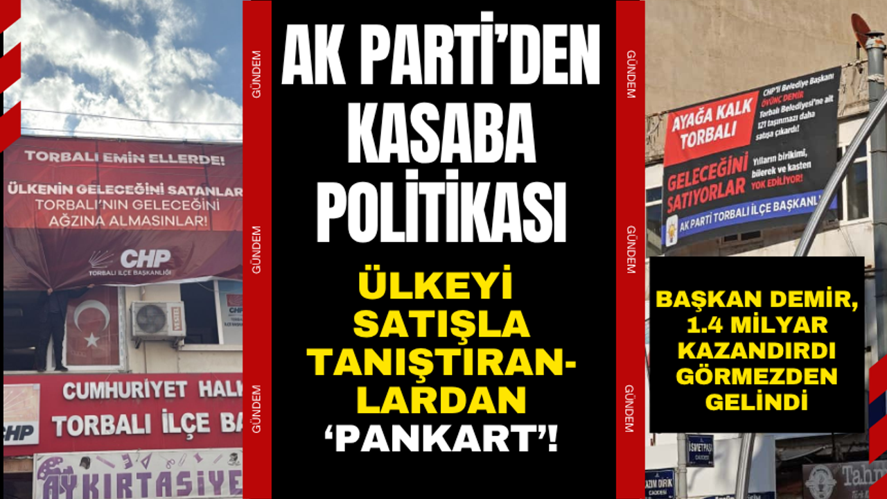 Torbalı Belediyesi’nin, hükümetin silkeleme politikasını savurmak, belediyenin faiz yükünü ortadan kaldırmak ve yasal hak edişlerindeki kesintileri ortadan kaldırmak amacıyla gerçekleştireceği satış süreci, ilçede yeni bir siyasi tartışmayı beraberinde getirdi. AK Parti’nin “Ayağa kalk Torbalı! Geleceğini satıyorlar” pankartına CHP’den sert yanıt geldi: “Ülkenin geleceğini satanlar, Torbalı’nın geleceğini ağzına almasın!”