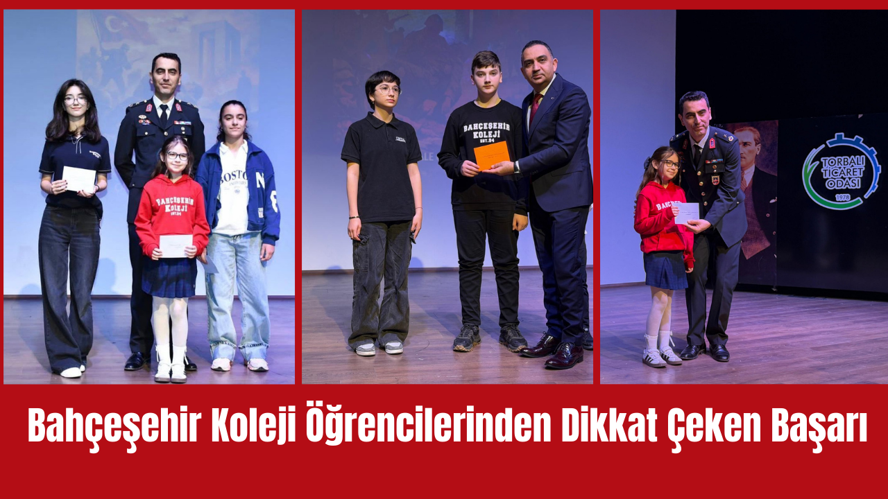 İlçemizde düzenlenen 12 Mart İstiklal Marşı’nın Kabulü ve Mehmet Akif Ersoy’u Anma Günü ile 18 Mart Çanakkale Zaferi ve Şehitleri Anma Günü etkinlikleri kapsamında gerçekleştirilen yarışmalarda Bahçeşehir Koleji İzmir Güney Kampüsü öğrencileri önemli dereceler elde etti.
