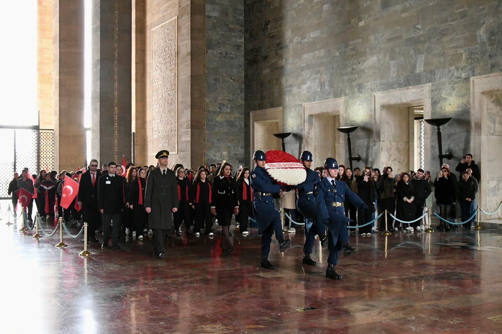 Bahçeşehir Koleji İzmir Güney Kampüsü öğrencileri, Anıtkabir’de gerçekleştirdikleri resmi törenle Atatürk’e saygılarını sundu. Anı defterine yazılan mesaj ve Meclis ziyaretleri programa ayrı bir anlam kattı. Bahçeşehir Koleji İzmir Güney Kampüsü Ortaokul öğrencileri, öğretmenleri ve yöneticileri, Cumhuriyetimizin kurucusu Ulu Önder Gazi Mustafa Kemal Atatürk’ün ebedi istirahatgâhı Anıtkabir’i ziyaret etti. Ziyaret kapsamında öğrenciler, Aslanlı Yol’dan Türk bayrakları eşliğinde yürüyerek tören alanına ulaştı. Resmi tören düzeni içerisinde mozoleye çıkan öğrenciler, Atatürk’e olan saygı, minnet ve bağlılıklarını güçlü bir şekilde ortaya koydu. Tören sırasında Atatürk’ün mozolesine çelenk sunulurken saygı duruşunda bulunuldu. Tören boyunca öğrenciler, Atatürk’e duydukları saygıyı ve bağlılığı içtenlikle yansıttı.