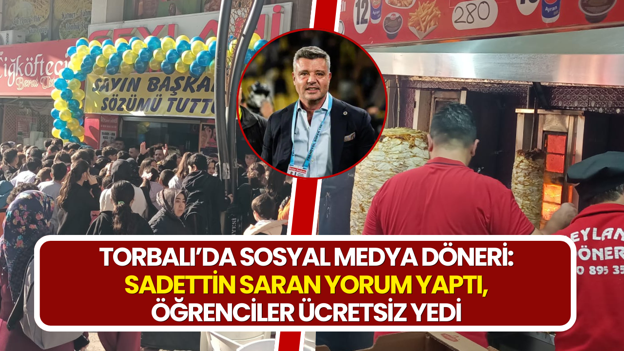 Torbalı’da bir dönercinin sosyal medyada başlattığı kampanya kısa sürede büyük ilgi gördü. Ayrancılar’da hizmet veren Geylani Döner, sosyal medya hesabından yaptığı paylaşımda, “Fenerbahçe Başkanı Sadettin Saran bu videoya yorum yapsın, öğrencilere döner ücretsiz” çağrısında bulundu. Paylaşım kısa sürede binlerce kişiye ulaşırken, beklenen yorum da geldi.