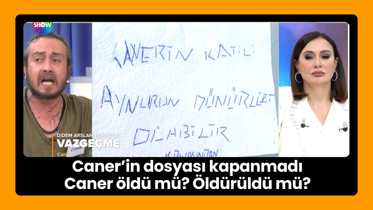 Show TV ekranlarında yayınlanan Didem Arslan Yılmaz'la Vazgeçme programında Torbalılı Caner Keskin'in şüpheli ölümü konuşulmaya devam ediliyor. Caner Keskin'in babaannesinin bahçesinde bulunan esrarengiz not, dosyanın seyrini tamamen değiştirdi. Olay artık bir cinayet dosyası olarak ele alınıyor. Peki, katil kim? Notta yazan “Caner’in katili Aynur’un dünürleri olabilir, namus davasından” ifadeleri büyük bir şüphe oluşturdu. Bu notun ardından Cihan’ın ev sahibi Aynur sinir krizi geçirirken iddiaları kesin bir dille reddetti. Caner'in kardeşi Cihan ise bu iddiaların “saçmalık” olduğunu, birilerinin bilerek dikkat dağıtmaya çalıştığını söyledi.