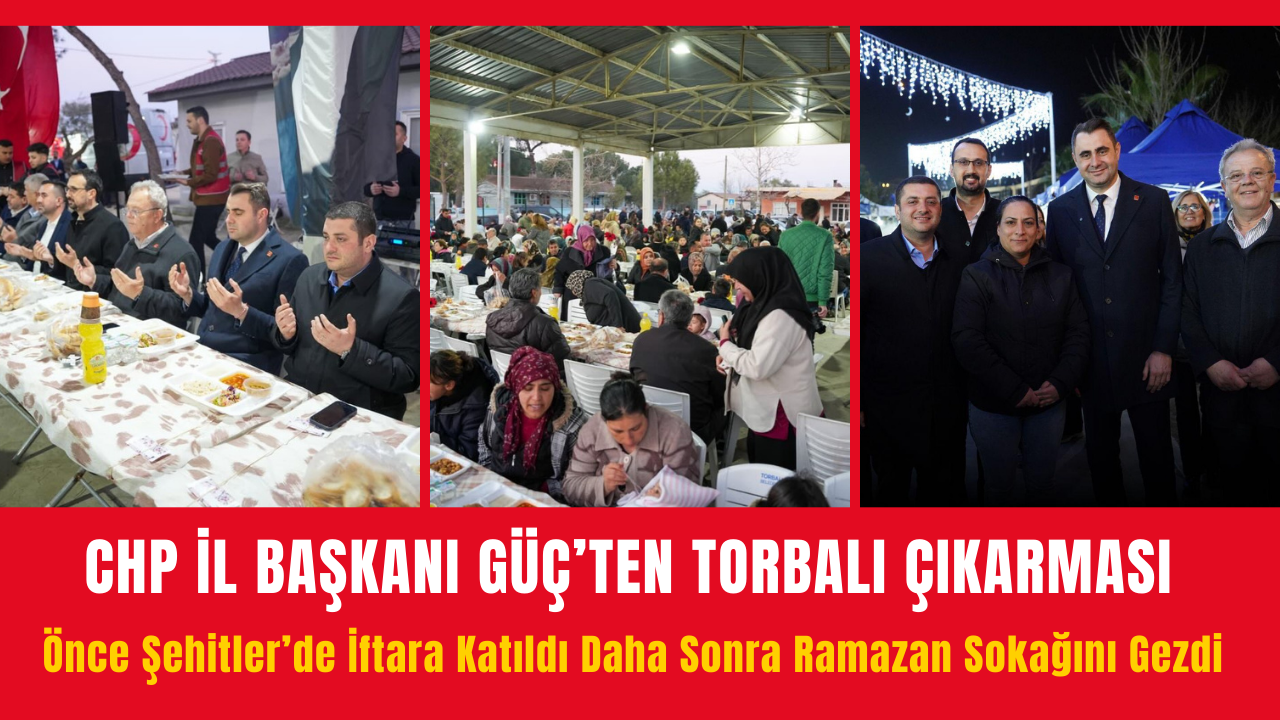 Çağatay Güç, dün Torbalı’da bir dizi programa katılarak vatandaşlarla bir araya geldi. Cumhuriyet Halk Partisi İzmir İl Başkanı olan Güç’ün ilçedeki ziyaretleri yoğun ilgi gördü. Program kapsamında ilk olarak Şehitler Köyü sakinlerinin imece usulü düzenlediği geleneksel iftar yemeğine katılan Güç’e, Övünç Demir, İbrahim Özel ile birlikte CHP İzmir İl Başkan Yardımcıları Servet Arga ve Sercan Kaya eşlik etti. Ayrıca il yöneticileri Şahin Çelik, Yüksel Seven ve Vala Peker ile CHP ilçe yöneticileri de iftar programında yer aldı.
