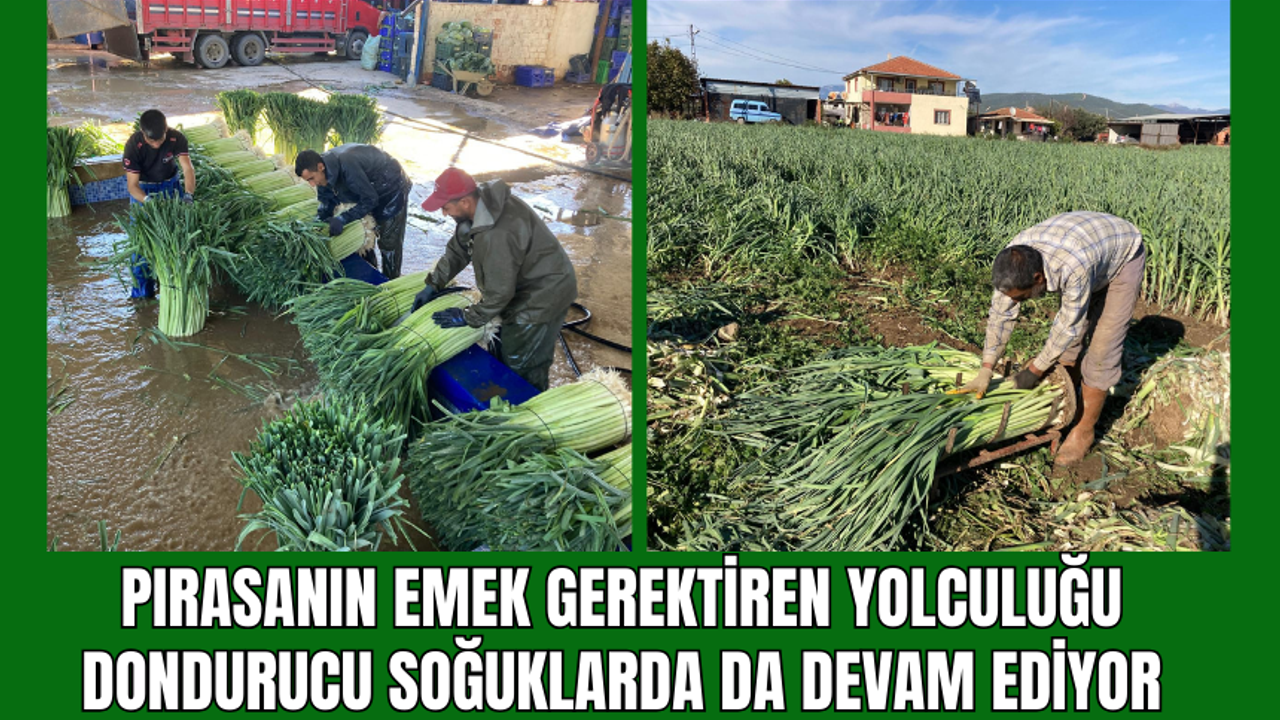 Bu yıl ilçe genelinde yaklaşık 20 bin dekar alanda ekimi yapılan pırasa, sert hava koşullarına rağmen yolculuğunu sürdürüyor. Yağmur ve soğuk altında güçlükle toplanan ürünler, hem iç pazarda hem de Avrupa ülkelerinde yoğun talep görüyor.
