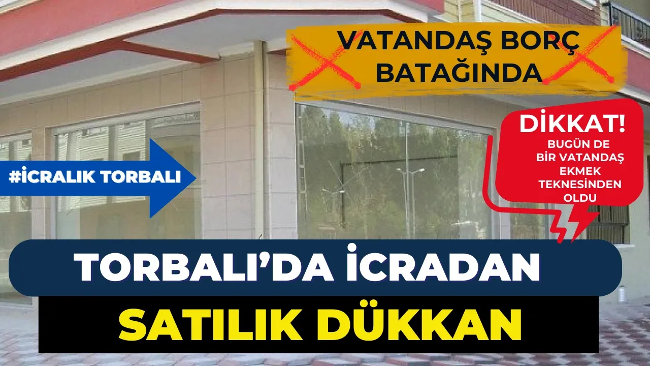 Torbalı merkezde yer alan dükkan, borç nedeniyle icra yoluyla satışa çıktı. Artan ekonomik sıkıntılar, ilçede gayrimenkul satışlarını da artırıyor. Torbalı Mahallesi’nde bulunan bir dükkan, Torbalı İcra Dairesi tarafından satışa çıkarıldı. 5 milyon TL muhammen bedelle satışa konulan taşınmazın ihalesi, 20 Kasım 2025’te başlayacak ve e-satış sistemi üzerinden gerçekleştirilecek.