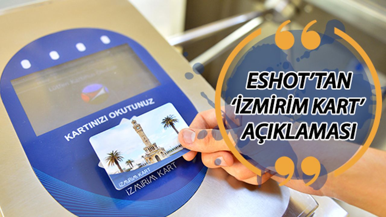 ESHOT’tan yapılan açıklamada, fotoğraflı öğrenci ve öğretmen (kişisel) kartlarının “şehir kartı” projesi kapsamında pek çok hizmeti bünyesinde barındıran yüksek güvenlikli İzmirim Kart’a dönüştürülme ücretinin, Büyükşehir Belediye Meclisi’nin aldığı kararla 7,00 TL olarak belirlendiği, fotoğrafsız eski kartların İzmirim Kart’a dönüşüm ve değişim ücretinin ise 6,00 TL olduğu hatırlatılarak, “4736 Sayılı Kamu Kurum ve Kuruluşlarının Ürettikleri Mal ve Hizmet Tarifeleri ile Bazı Kanunlarda Değişiklik Yapılması Hakkındaki Kanun uyarınca, İzmirim Kart’ın ücretsiz verilmesi mümkün değildir. Bu önemli detayı vatandaşlarımızın bilgisine sunuyoruz” ifadelerine yer verildi.