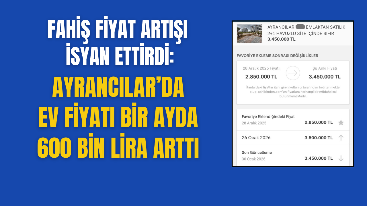 Torbalı Ayrancılar Mahallesi’nde bir dairenin satış fiyatı, yaklaşık bir ay gibi kısa bir sürede 2 milyon 850 bin liradan 3 milyon 450 bin liraya yükseldi. İlan sitesinde yer alan bu dikkat çekici fiyat artışı, bölgede konut arayışında olan vatandaşların tepkisine yol açtı. Kısa sürede yapılan 600 bin liralık zam, artan hayat pahalılığı ve konut krizinin geldiği noktayı bir kez daha gözler önüne serdi.