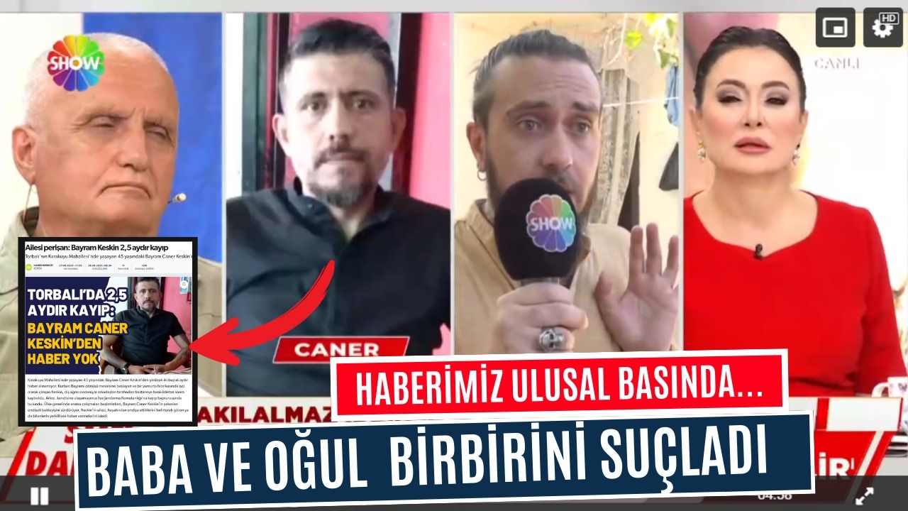 Bayram Caner Keskin'in babası Mesut Keskin Show TV'de yayınlanana Didem Arslan Yılmaz'la Asla Vazgeçme programına katılarak oğlunun bulunmasını istedi. Burada çarpıcı açıklamalar yapan baba Keskin, büyük oğlu Bayram Caner Keskin'in kaybolmasıyla ilgili küçük oğlu Cihan Keskin'in ilgisi olabileceğini söyledi. Cihan Keskin'i suçlayan baba, oğlunun şüpheli davranışları olduğunu söyledi. Torbalı'ya gelen Show TV ekibi, yaşadığı evde Cihan Keskin'i canlı yayına bağladı. Burada babasının iddialarını ret eden Cihan Keskin, abisinin bulunması için sadece kendisinin çaba sarf ettiğini, bu konuda Torbalı Güncel Gazetesi aracılığıyla konuyu gündeme taşıyarak abisini bulmaya çalıştığını ifade etti. Cihan Keskin de kendisini suçlayan babasını suçladı.
