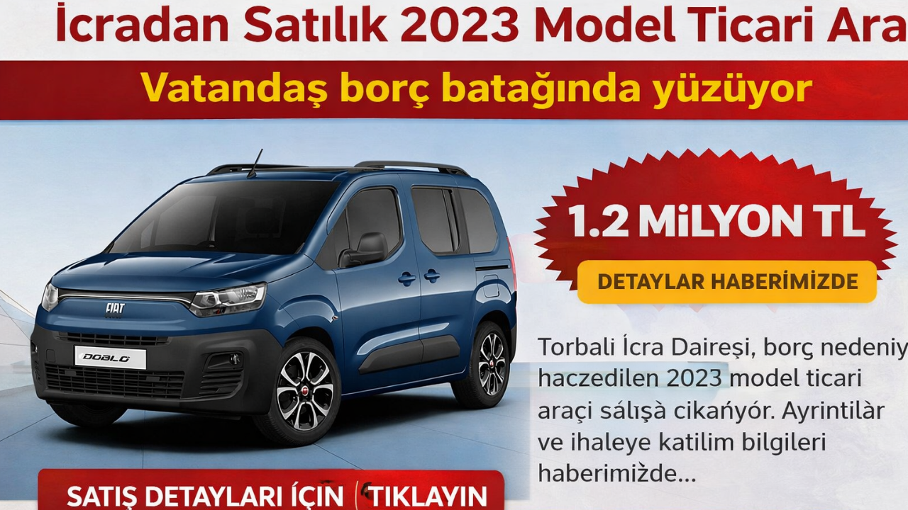 Torbalı İcra Dairesi tarafından bir borçtan dolayı haczedilen taşınır mal için satış ilanı yayımlandı. İcra dosyası kapsamında satışa çıkarılan araç için artırma süreci önümüzdeki günlerde başlayacak. Edinilen bilgilere göre, satışa konu olan araç 2023 model, dizel yakıtlı ve otomatik vites özelliklerine sahip hafif ticari sınıfta yer alıyor. 5 koltuklu ve kapalı kasa camlı van tipindeki aracın genel durumunun iyi olduğu, kaportasında ciddi bir kaza hasarının bulunmadığı belirtildi. Araçta kullanım kaynaklı bazı çizikler ile birlikte belirli bölgelerde yüzeysel boya izleri olduğu ifade edilirken, kontak anahtarı ve ruhsatının bulunmadığı bilgisi de paylaşıldı.