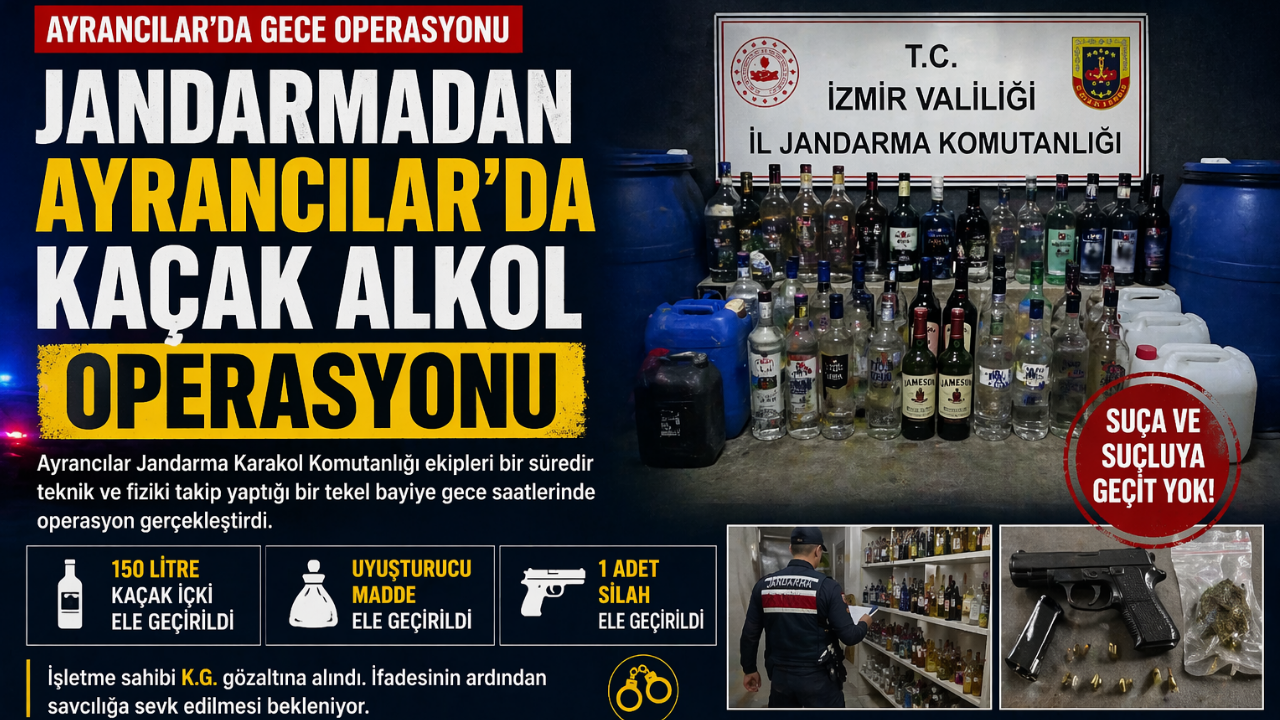 Ayrancılar’da jandarma ekipleri tarafından gerçekleştirilen operasyonda çok sayıda kaçak ürün ve suç unsuru ele geçirildi. Ayrancılar Jandarma Karakol Komutanlığı ekiplerinin bir süredir teknik ve fiziki takibini sürdürdüğü tekel bayiye gece saatlerinde operasyon düzenlendi. Yapılan baskında yaklaşık 150 litre kaçak içki ele geçirilirken, işletme sahibine ait olduğu belirlenen adreste yapılan aramalarda ise bir miktar uyuşturucu madde ile silah bulundu. Operasyon kapsamında K.G. isimli şüpheli gözaltına alındı.