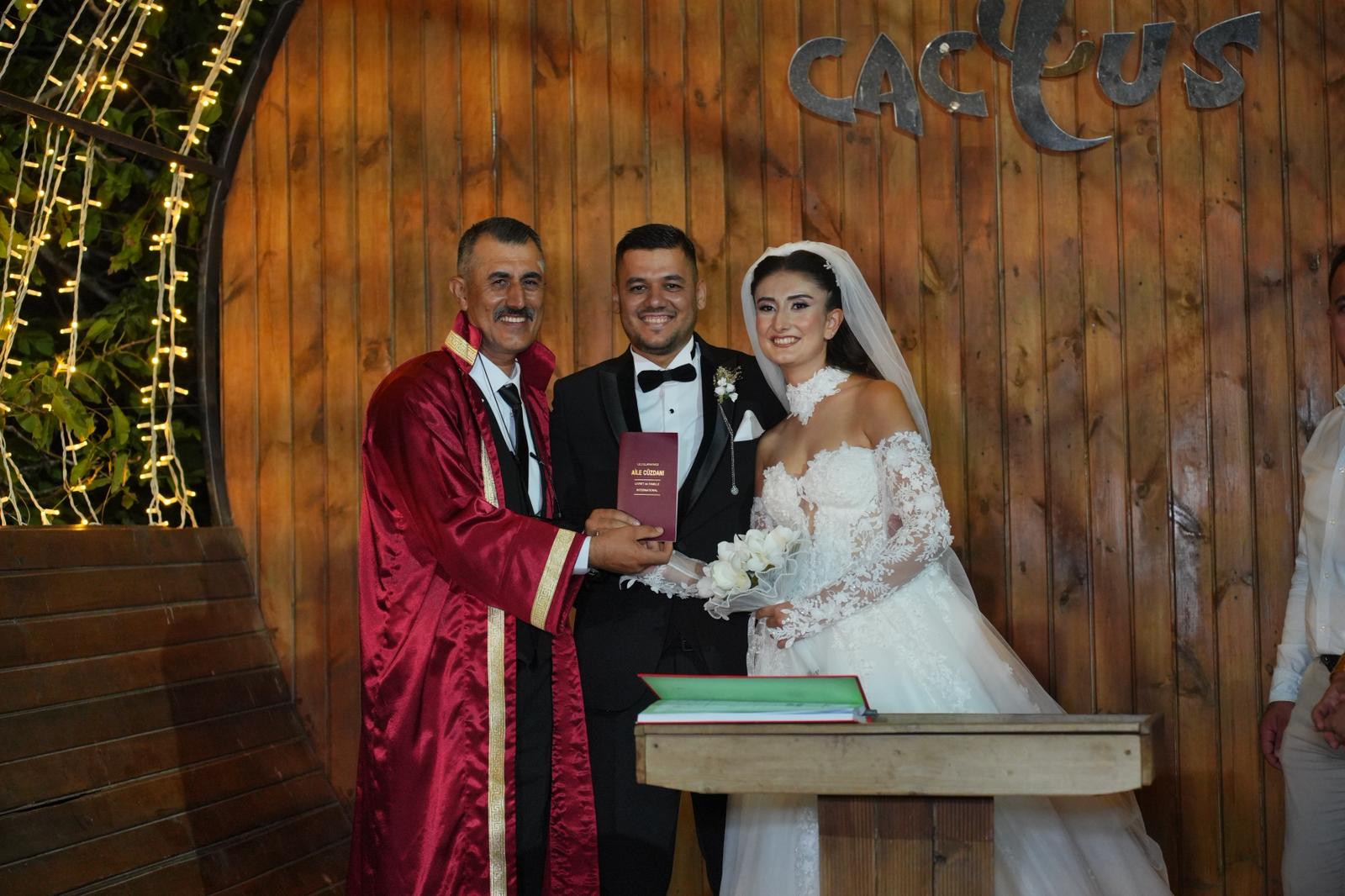 Fikret Bardakçı, törende yaptığı kısa konuşmada, “Yüzlerce nikâh kıydım ama bu bambaşka bir duygu. Hem görevimi yaptım hem baba olarak büyük bir gurur yaşadım,” diyerek duygularını paylaştı. Aslı ve Tolga çifti, alkışlar eşliğinde ‘bir ömür mutluluğa evet’ derken, aileleri ve davetliler de bu anlamlı ana tanıklık etti. Düğün, renkli görüntüler ve eğlenceli anlarla geç saatlere kadar devam etti.