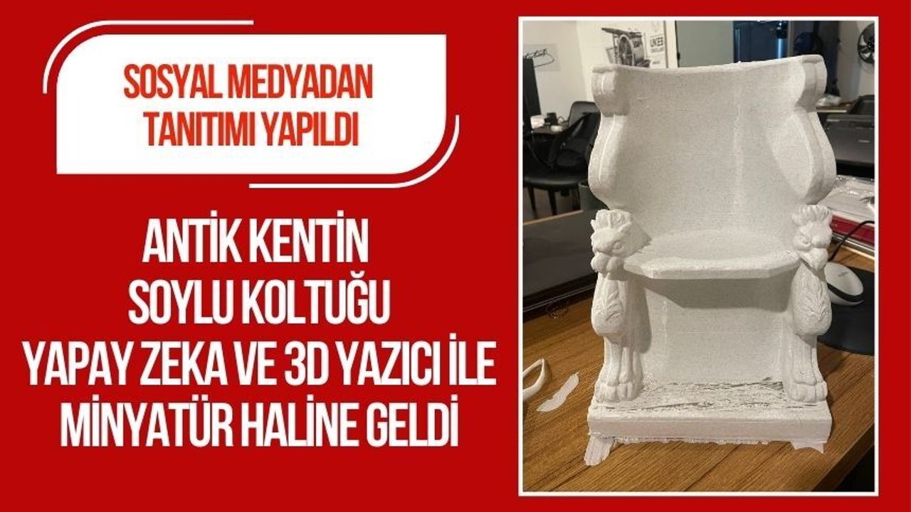 Metropolis Antik Kenti’nin simgesi haline gelen girefonlu soylu koltuğunun minyatürü, yapay zekâ destekli tasarım ve 3D yazıcı teknolojisiyle üretildi. Tarihteki sınıf ayrımının en çarpıcı sembollerinden biri olan koltuk, şimdi dijital ortamda da yaşatılıyor.
