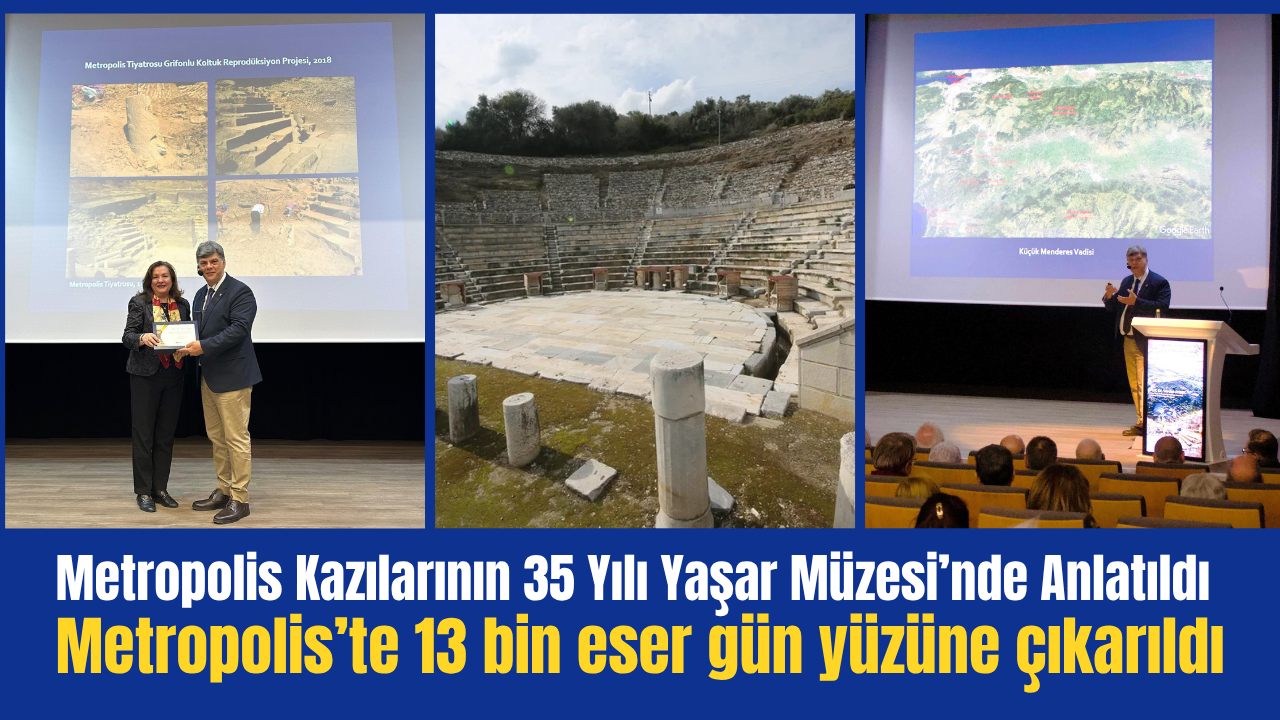 Metropolis’te yürütülen kazılar kapsamında Akropol, Tiyatro, Bouleuterion, Stoa ve hamam yapılarında yürütülen çalışmaların ortaya koyduğu bulgular dinleyicilerle paylaşılırken, Metropolis’te bugüne kadar yaklaşık 13 bin eserin gün yüzüne çıkarıldığı vurgulandı.
