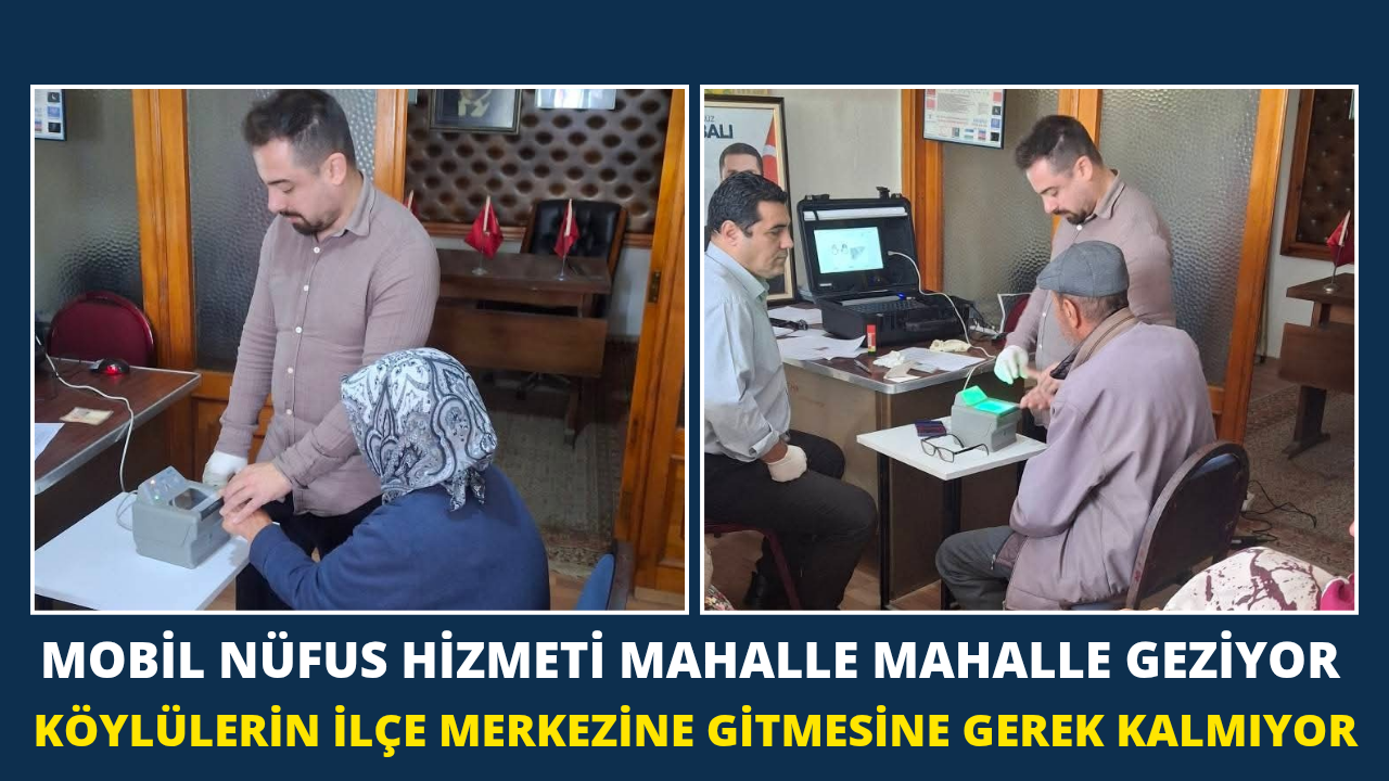 Torbalı İlçe Nüfus Müdürlüğü personeli, özverili çalışmalarıyla vatandaşlara hizmet sunmaya devam ediyor. Yoğun nüfusa sahip ilçede, nüfus işlemlerinin daha hızlı ve erişilebilir olması amacıyla Mobil Nüfus Hizmetleri aralıksız sürüyor. Bu kapsamda mahalle mahalle dolaşan ekipler, vatandaşlara kimlik kartı, pasaport, sürücü belgesi, adres değişikliği, kimlik kartına sürücü belgesi ve e-imza yükleme gibi birçok işlemi yerinde gerçekleştirme imkânı sağlıyor.