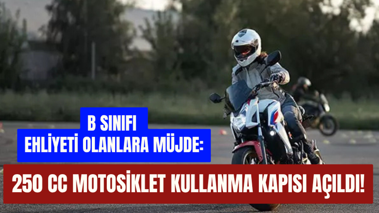 Yeni yasa, B sınıfı ehliyet sahiplerine, trafik güvenliğini ve motosiklet kullanım kültürünü gözeterek belirli şartlar dâhilinde 250 cc'ye kadar motosiklet kullanma imkânı sunuyor.
