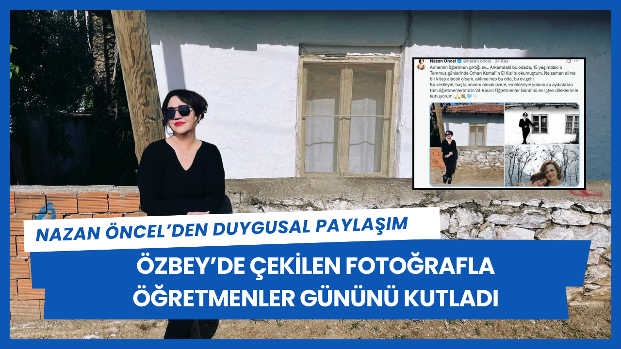 Türkiye’nin sevilen sanatçılarından ve Torbalı’nın Özbey Mahallesi’nde doğup büyüyen Nazan Öncel, 24 Kasım Öğretmenler Günü’nü memleketinde çekilen özel bir fotoğrafla kutladı. Annesinin yıllarca Özbey İlkokulu’nda öğretmenlik yapması nedeniyle öğretmenler gününün kendisi için ayrı bir anlam taşıdığını belirten Öncel, paylaşımıyla duygulandırdı.