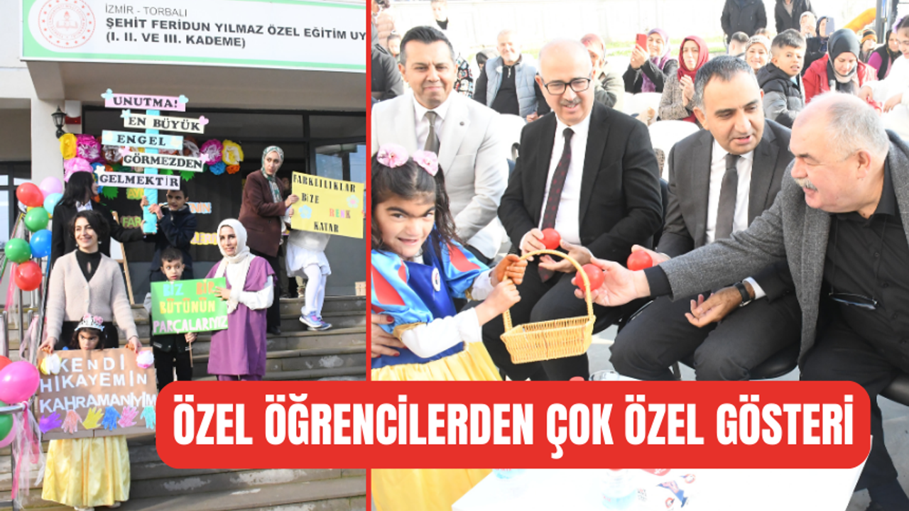 3 Aralık Dünya Engelliler Günü kapsamında Şehit Feridun Yılmaz Özel Uygulama Okulu’nda anlamlı bir tören düzenlendi. Törene engelli öğrenciler ve ailelerinin yanı sıra Torbalı Kaymakamı Adem Çelik, Torbalı Belediye Başkan Vekili Ertan Çelik, Torbalı Belediye Başkan Yardımcısı Zümer Timur Mert, Torbalı İlçe Milli Eğitim Müdürü Kadir Kadıoğlu, CHP Torbalı İlçe Başkanı İbrahim Özel, kurum amirleri ve çok sayıda eğitimci katıldı.