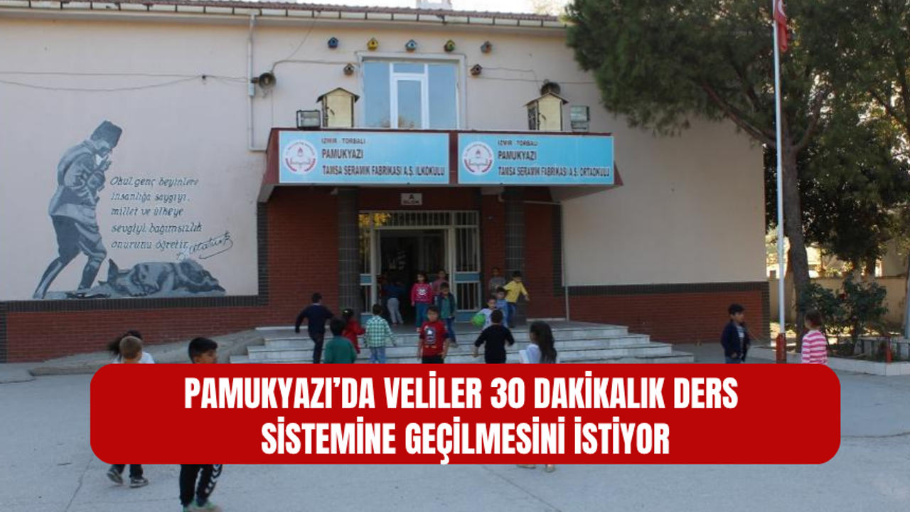Öte yandan okul yönetiminin, 30 dakikalık ders uygulamasına geçmek için Torbalı İlçe Milli Eğitim Müdürlüğü ve İzmir Valiliği’ne resmi talepte bulunduğu, başvurunun değerlendirme aşamasında olduğu öğrenildi.