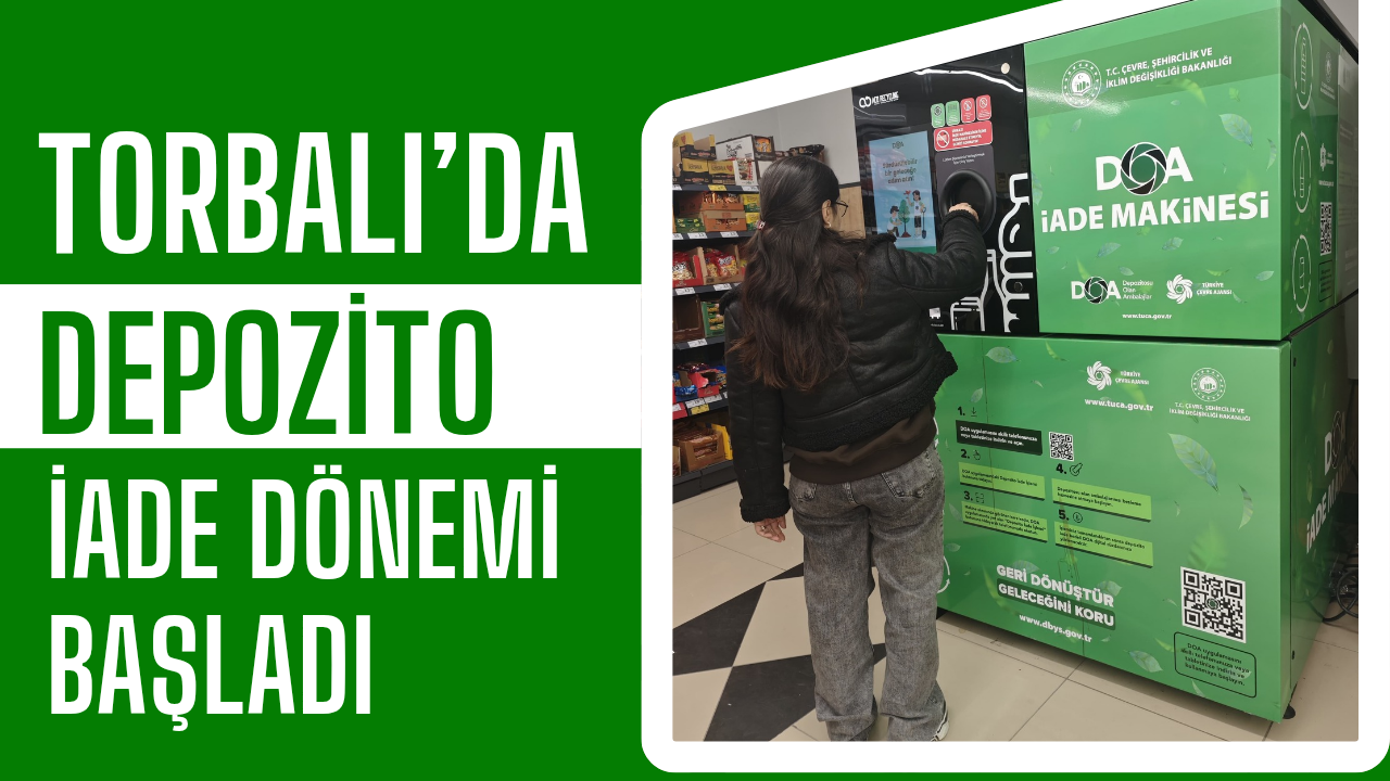 Torbalı’da sürdürülebilir çevre çalışmaları kapsamında önemli bir adım daha atıldı. Türkiye Çevre Ajansı tarafından hayata geçirilen Depozito İade Sistemi (DOA) çerçevesinde ilçedeki ilk iade makinesi Alpkent Mahallesi’nde bulunan A101 mağazasında kurularak vatandaşların kullanımına açıldı.