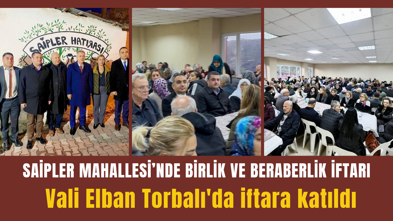 Programda yapılan konuşmalarda Ramazan ayının dayanışma, paylaşma ve kardeşlik ayı olduğuna vurgu yapılırken, bu tür organizasyonların toplumsal birlikteliği güçlendirdiği ifade edildi. İftar yemeği sonrası vatandaşlar protokol üyeleriyle sohbet ederek hatıra fotoğrafı çektirdi. Saipler Mahallesi’nde düzenlenen iftar programı, sıcak ve samimi görüntüler eşliğinde sona erdi. Öte yandan Torbalı Belediye Başkanı Övünç Demir yaptığı paylaşımda "Bugün iftarda İzmir Valimiz Dr. Süleyman Elban ve Torbalı Kaymakamımız Adem Çelik’le birlikte Saipler Mahallemizdeydik. İftarımızı mahallemizin sıcak ve samimi hemşehrileriyle açtık, dualarımızı hep birlikte ettik.