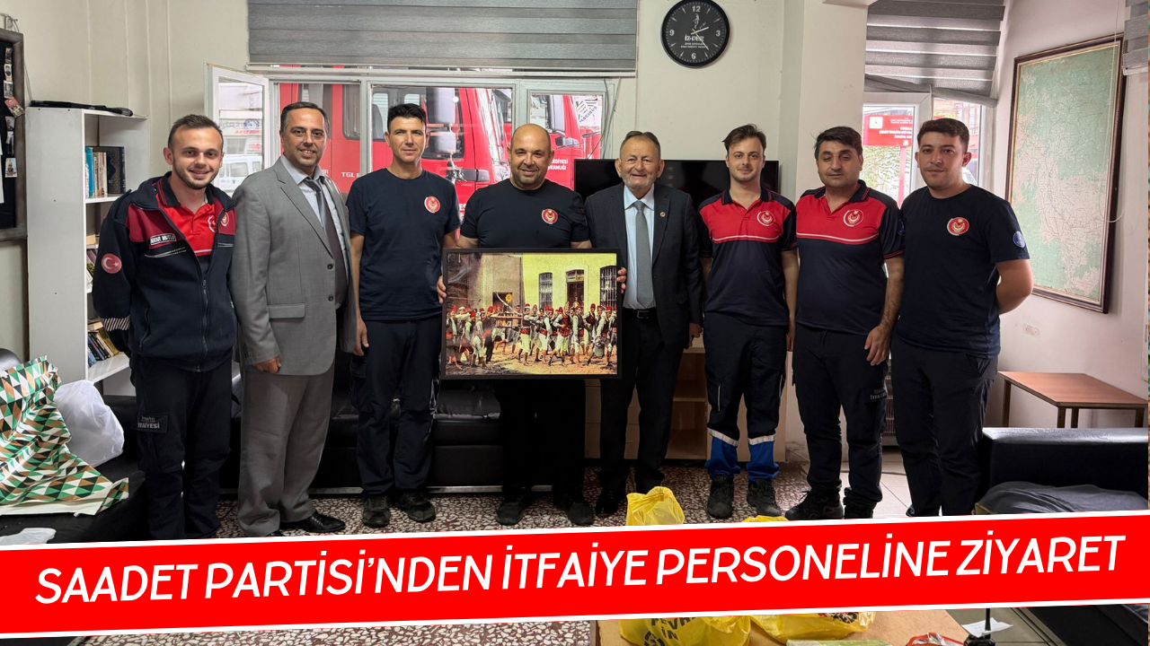 Ziyaret sırasında itfaiye personelinin haftasını kutlayan Saadet Partisi heyeti, Osmanlı dönemine ait ilk itfaiyecilerin yer aldığı özel bir tabloyu itfaiyecilere hediye etti.