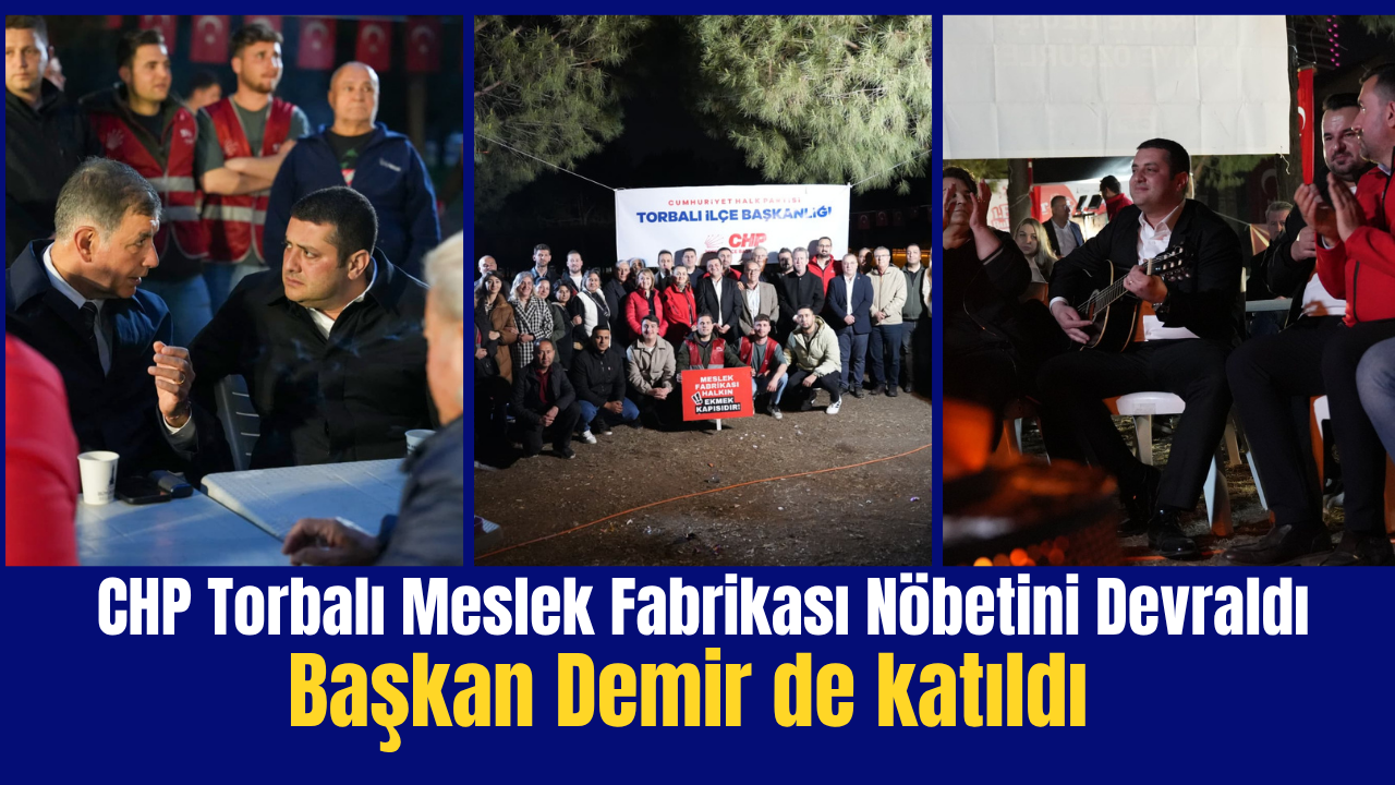 İzmir’de Meslek Fabrikası önünde sürdürülen nöbet eylemi, farklı ilçe örgütlerinin katılımıyla büyüyerek devam ediyor. Dün nöbeti Torbalı’dan gelen CHP Torbalı İlçe Örgütü devraldı. Torbalı Belediye Başkanı Övünç Demir, CHP Torbalı İlçe Başkanı İbrahim Özel, CHP İzmir İl Başkan Yardımcısı Sercan Kaya, il ve ilçe yöneticileri, belediye meclis üyeleri, kadın ve gençlik kolları ile çok sayıda partili nöbete katıldı. Gece boyunca süren nöbette, Meslek Fabrikası’nın kamuya ait bir değer olduğu vurgulanarak “Sahip çıkma” mesajı verildi. İzmir Büyükşehir Belediye Başkanı Cemil Tugay’ın da yer aldığı nöbette Başkan Demir, gitar çalarak nöbete katılan vatandaşlarla dayanışma türküleri seslendirdi.