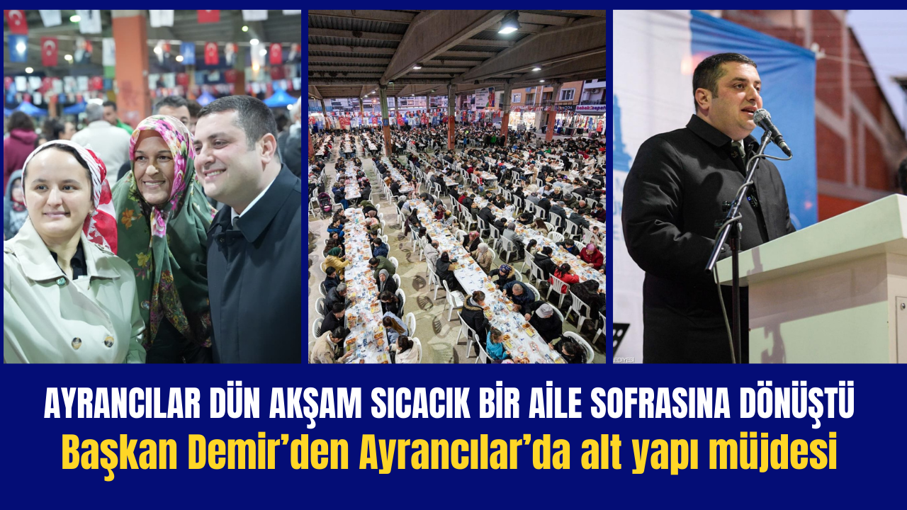 İftar programında konuşan Torbalı Belediye Başkanı Övünç Demir, Ayrancılar’ı ailesi olarak gördüğünü vurgulayarak şunları söyledi: “Ayrancılar evim ailem gibi görüyorum. Torbalı’ya ne yapıyorsak Ayrancılar’a da aynısını yapacağız demiştik; bugün de aynı anlayışla yolumuza devam ediyoruz. Torbalı’ya ne hizmet kazandırıyorsak Ayrancılar’a da aynı hizmeti getiriyoruz. Yakın zamanda Türkiye’nin en büyük kreşlerinden birini Ayrancılar’a kazandıracağız çalışmalarımız hızlı bir şekilde ilerliyor. Ayrancılar’da hizmete kazandırdığımız Engelli Araç Tamir Atölyesi ile engelli vatandaşlarımızın her zaman yanında olduğumuzu gösteriyoruz. Bu sofralar birlik, beraberlik ve kardeşlik sofralarıdır. Biz hizmet üretmeye, ayrım yapmadan çalışmaya devam edeceğiz” ifadelerini kullandı.