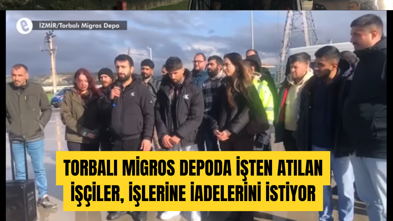 Torbalı Migros Depo’da işten çıkarılan işçiler, depo önünde bir araya gelerek işe iade talebinde bulundu. İşçiler, iş bırakma eylemi gerekçe gösterilerek işten çıkarıldıklarını ve haklarını talep ettiklerini açıkladı. İşten çıkarılan işçiler, önce kendi aralarında toplantı yaptı, ardından depo önünde açıklama yaptı. Açıklamada, iş bırakma eylemine katılan arkadaşlarının işine geri döndüğü, ancak kendilerinin işten çıkarıldığı ifade edildi. İşçilerin talebi, işlerine geri dönmek oldu.