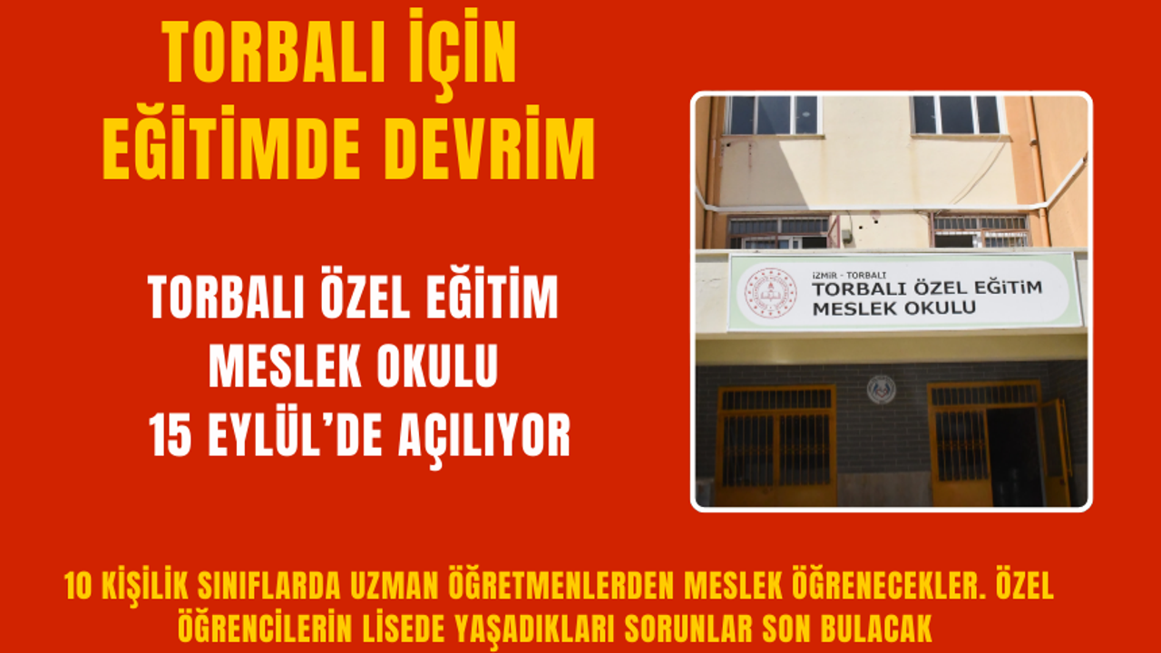 Torbalı'da bulunan çeşitli liselerin özel eğitim sınıflarında eğitim gören 65 özel öğrenci bulunuyor. Bu öğrenciler, kendileri için özel olarak hazırlanmış olan Torbalı Özel Eğitim Meslek Okulu'nda çok daha verimli ve konforlu bir eğitim alabilecekler. Çevre ilçelerden de öğrenci kabul edecek olan okul, öğrencilere ücretsiz okul servisi de sağlayacak.