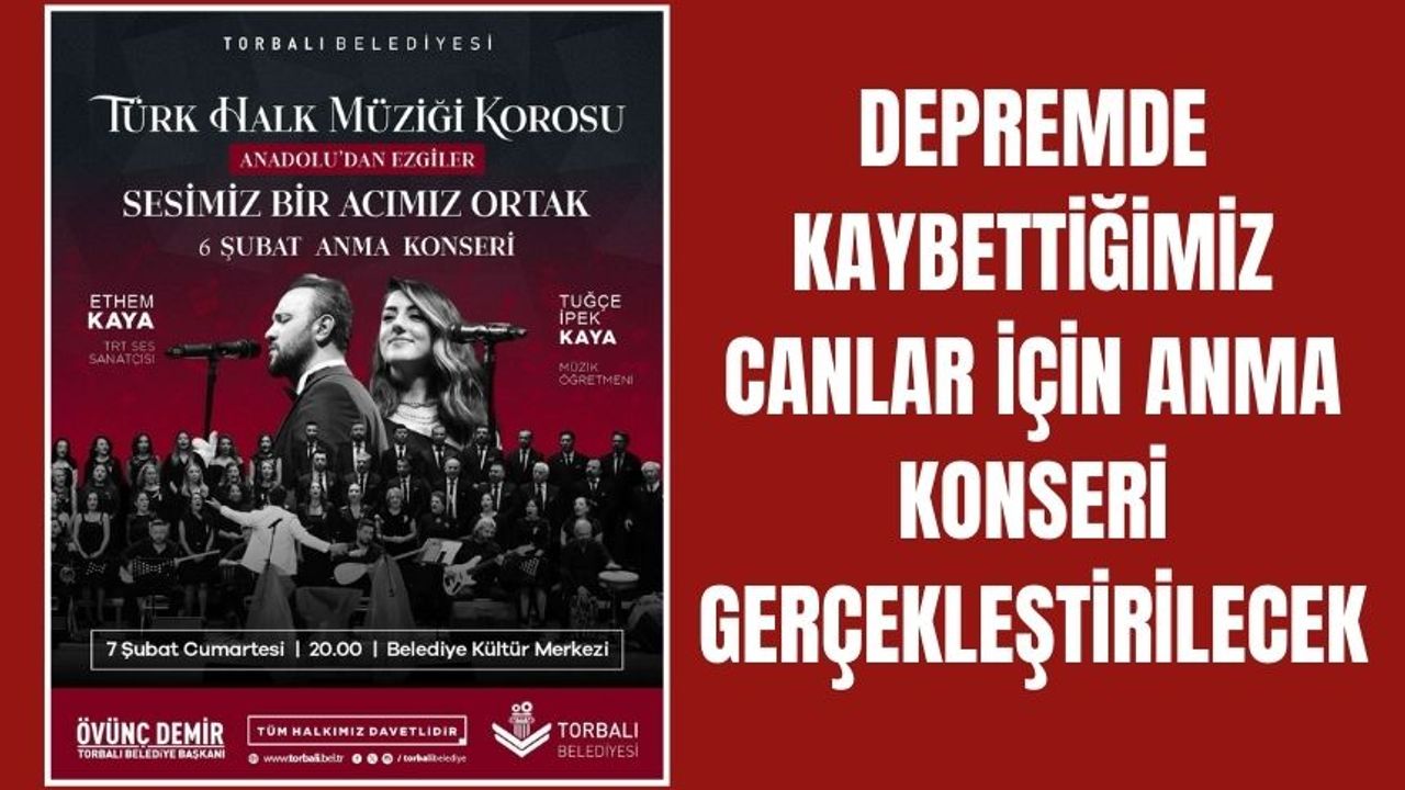 Anma konseri, 7 Şubat Cumartesi akşamı saat 20.00’de Torbalı Belediyesi Kültür Merkezi’nde gerçekleştirilecek. Tüm vatandaşların davetli olduğu etkinlikte, birlik ve dayanışma duygusunun ön plana çıkması hedefleniyor.