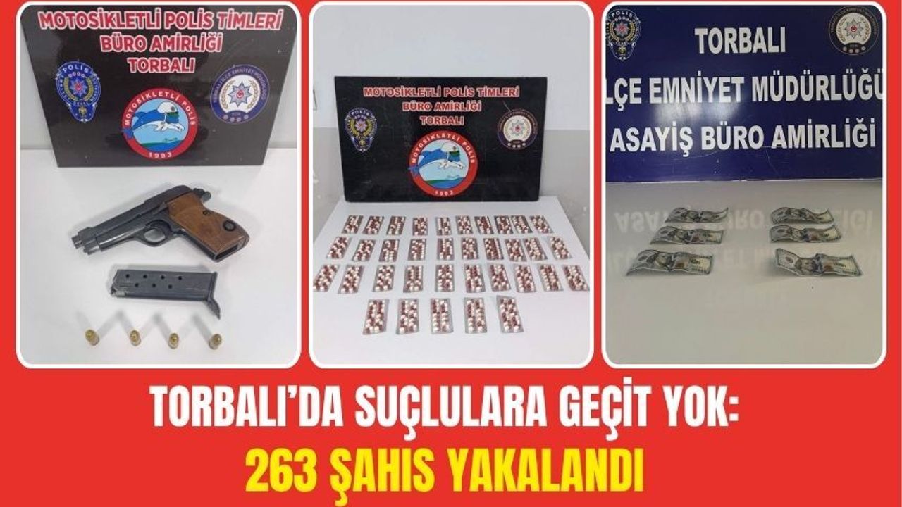 Torbalı Cumhuriyet Başsavcılığı koordinesinde, Torbalı İlçe Emniyet Müdürlüğü ekiplerince 1 Şubat - 31 Mart 2026 tarihleri arasında yürütülen operasyonlarda toplam 263 aranan şahıs yakalandı. Yakalanan kişilerden 61’i tutuklanarak cezaevine gönderildi.