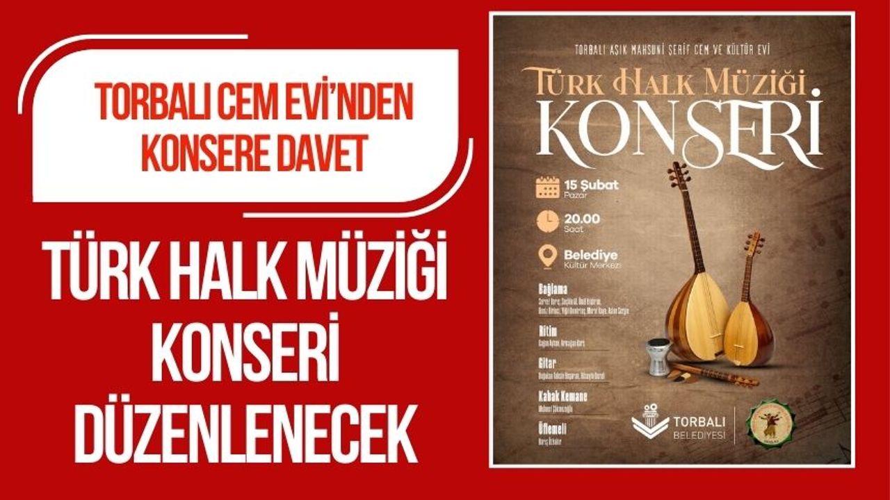 Torbalı’da Türk Halk Müziği tutkunlarını bir araya getirecek anlamlı bir konser düzenleniyor. Torbalı Aşık Mahsuni Şerif Cem ve Kültür Evi tarafından organize edilen Türk Halk Müziği Konseri, 15 Şubat Pazar günü saat 20.00’de Torbalı Belediyesi Belediye Kültür Merkezi’nde gerçekleştirilecek.