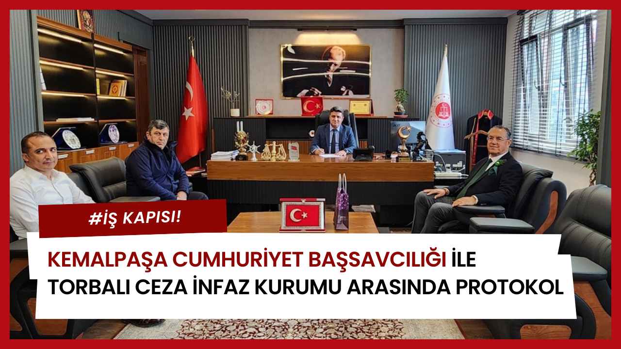 Kemalpaşa Cumhuriyet Başsavcılığı ile Torbalı Ceza İnfaz Kurumu Müdürlüğü arasında işbirliği protokolü imzalandı. Kemalpaşa Adliyesi'nde düzenlenen törende, Kemalpaşa Cumhuriyet Başsavcısı Bahadır Bilen ile Torbalı Ceza İnfaz Kurumu Müdürü Hakan Turan protokolü imzaladı. Protokol kapsamında, Torbalı Ceza İnfaz Kurumu Müdürlüğü tarafından görevlendirilecek üç hükümlü, Kemalpaşa Adliyesinde ihtiyaç duyulan alanlarda görev alacak.