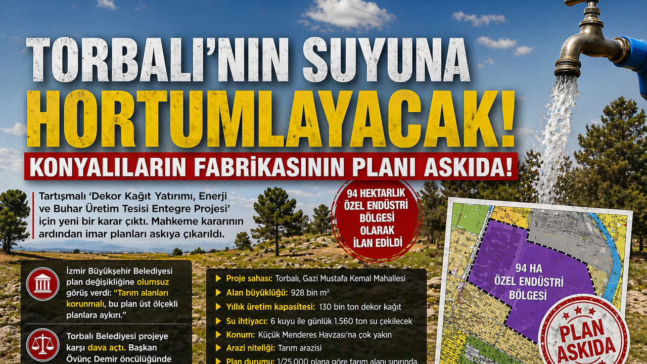 Torbalı’da tartışmalara neden olan “Dekor Kağıt Yatırımı, Enerji ve Buhar Üretim Tesisi Entegre Projesi” ile ilgili yeni bir süreç başladı. Mahkemenin ÇED olumlu kararına yönelik açılan davayı iptal etmesinin ardından, Çevre, Şehircilik ve İklim Değişikliği Bakanlığı proje sahasına ilişkin imar planlarını askıya çıkardı. Askıya çıkan plan doğrultusunda, alan “Konya Kağıt Sanayi ve Ticaret A.Ş. İzmir Özel Endüstri Bölgesi” olarak yaklaşık 94 hektarlık bir alanda tanımlandı. Söz konusu bölge daha önce Danıştay kararlarıyla “sanayi alanı” kullanımının iptal edilmesi sonrası büyük ölçüde plansız kalmıştı.