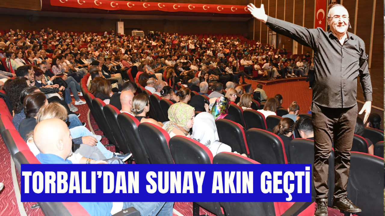 Ünlü yazar ve şair Sunay Akın, Torbalı Belediye Kültür Merkezi’nde sahne aldı. Arya Kültür Sanat ve Şekerpare Tiyatro tarafından organize edilen gösteride Sunay Akın ile buluşan Torbalı halkı, Belediye Kültür Merkezi’ni tamamen doldurdu.