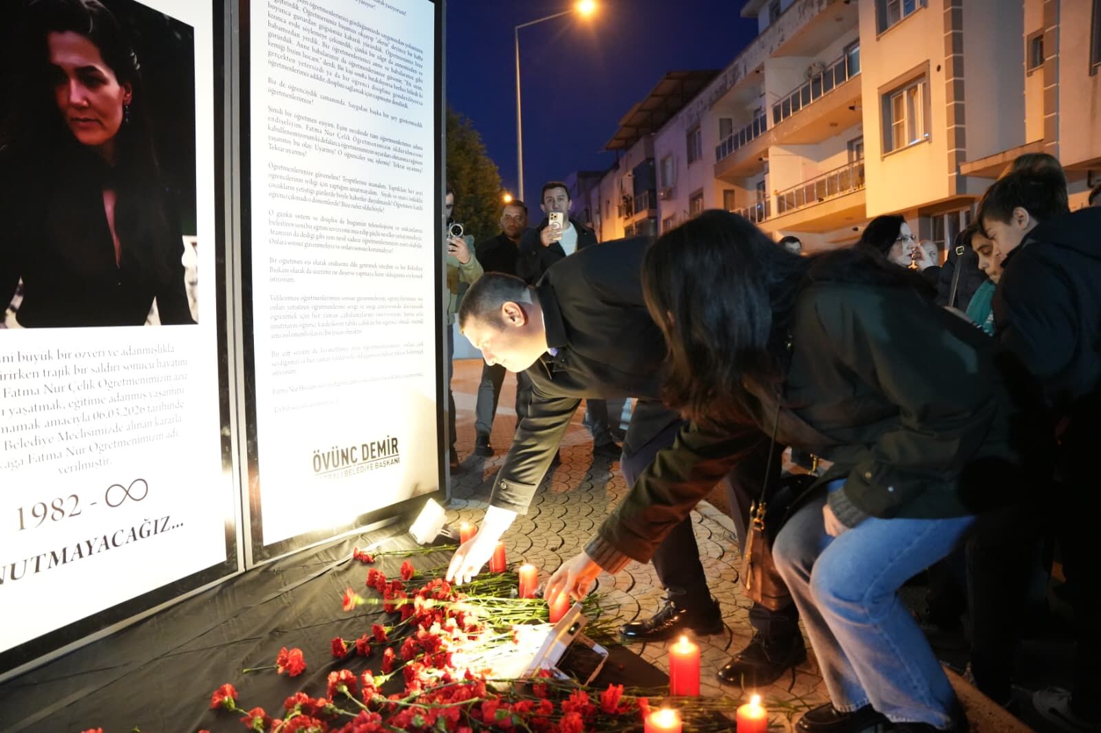 “Biz mavi önlüklü çocuklardık, abilerimiz ablalarımız siyah önlüklü çocuklardı. Mavi ve siyah önlükle yetişen çocukların hiçbiri öğretmen katili olmadı, bırakın katil olmayı karıncayı incitmedi. Şimdi başka bir yere evriliyor olay. Bu siyaset üstü bir olay. El birliğiyle hep birlikte ne gerekiyorsa üzerimize düşeni yapmalıyız. İnşallah bu son olur. Bir daha da bu tür saldırılar gerçekleşmez. Bu nedenle biz Alpkent Mahallesi 1032. Sokak’ta öğretmenimizin adını yaşatmak istedik.”