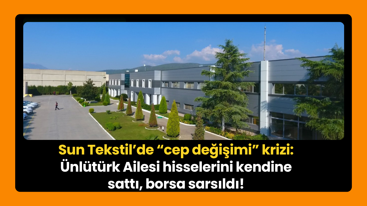 Yıllık 8,1 milyar TL’lik üretimden satışları ile Türkiye’nin en büyük 500 sanayi kuruluşu arasında 249. sırada yer alan Torbalı'da hizmet veren Sun Tekstil’in sahibi Ünlütürk Ailesi fertleri, şahıslarına ait hisseleri, yine kendilerinin yatırımcısı oldukları serbest fona satmaya başladı. Aile fertleri bir anlamda hisselerini bir ceplerinden diğer ceplerine koyarken şirketin Borsa İstanbul’dakii piyasa değeri çakıldı. Ailenin bu serbest fon hamlesiyle önemli bir vergi avantajı sağlayacağı belirtiliyor. Bugün şirketin hisseleri yüksek dalgalanmadan dolayı devre keserken, hisseler günü yüzde altının üzerinde kayıpla kapattı. Son bir ayda Sun Tekstil hisselerindeki düşüş oranı yüzde 31’i geçti.
