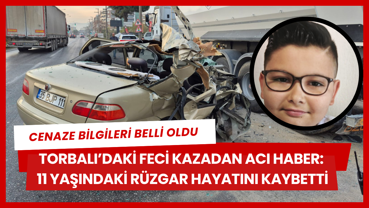 Torbalı’da 19 Kasım’da sabah saatlerinde İzmir–Aydın Karayolu üzerinde meydana gelen trafik kazasında ağır yaralanan 11 yaşındaki Rüzgar Süleyman Yılmaz’dan acı haber geldi. 60 Evler Sitesi önünde park halindeki 35 US 319 plakalı TIR’a çarpan 35 BJP 111 plakalı otomobilde bulunan Rüzgar Süleyman Yılmaz ile Baran Hikmet Yılmaz yaralanmış, küçük Rüzgar’ın durumunun ağır olduğu bildirilmişti.