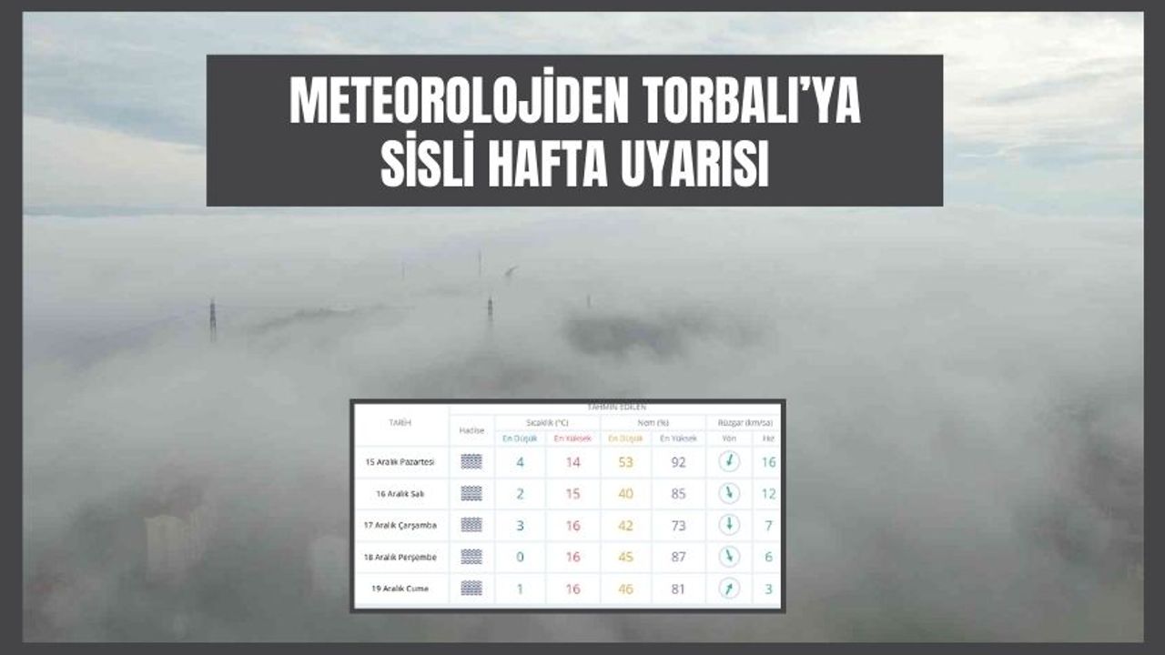 Meteoroloji Genel Müdürlüğü tarafından yapılan hava durumu tahminlerine göre, Torbalı’da yoğun sis etkili olacak. Bugünden itibaren başlaması beklenen sisli havanın hafta sonuna kadar sürmesi öngörülüyor.