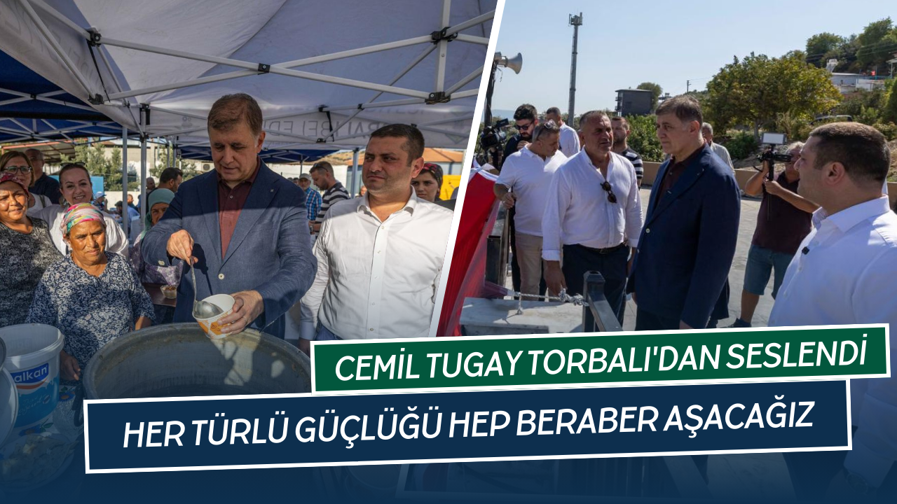 Aşure etkinliğinde konuşan Başkan Tugay, Görlüce Köyü'nün ihtiyaçlarını karşılamak için gereken desteği vereceklerini belirterek, “Her şey tanışmakla, birbirini doğru tanımakla başlıyor. Çok sıcak bir havada olmamıza rağmen sizlerin güler yüzünüzü, aydınlık yüzlerinizi görmekten çok mutlu oldum. Çocuklarımız, kadınlarımız, gençlerimiz, çalışanlarımız, emeklilerimiz, ihtiyaç duyan herkes için yaptığımız güzel hizmetlerde sizlerle birlikte olacağız. Bizi biraz darda, zorda bırakıyorlar ama ne olursa sizler yanımızda olduğunuz için eminiz her türlü güçlüğü hep beraber aşacağız. Güzel çocuklarımıza da güzel bir gelecek bırakacağız” diye konuştu.